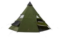 BLACK FALLS 8 ist ein traditionelles Zelt im Tipi-Stil, besteht jedoch aus modernen Materialien für einen leichten und einfachen Transport. Es lässt sich sehr einfach aufbauen – Zelt ausbreiten, Stange einstecken und im Boden befestigen. Schon ist der Schlafbereich für bis zu 8 Personen oder der Gruppentreffpunkt fertig. Die separate Bodenplane schützt vor Schmutz und Schlamm, kann jedoch auch zu Hause gelassen werden, wenn sie nicht benötigt wird. Die großen Belüftungsöffnungen mit Abdeckung und die Moskitonetze auf der Außenplane sorgen für eine hervorragende Luftzirkulation und ein angenehmes Raumklima im Innenzelt.