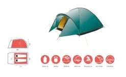 Das Modell TOPEKA 2 ist das neuste Mitglied der klassischen Kuppelzelt-Kollektion TOPEKA – reduziertes Design für ein kleineres Packmaß und weniger Gewicht. Es bietet trotzdem ausreichend Platz für zwei Personen mit Ausrüstung. Hervorragendes, anpassbares Innenklima dank der neuen GrandFlow-Belüftung an der Außenplane. Die zusätzliche Apsis-Stange sorgt für einen geschützten Vorraum vor dem Innenzelt, um dieses vor Regen zu schützen. Zudem lässt sich dort nasse und schmutzige Ausrüstung aufbewahren. TOPEKA 2 ist der perfekte Begleiter für Wander- und Campingausflüge.