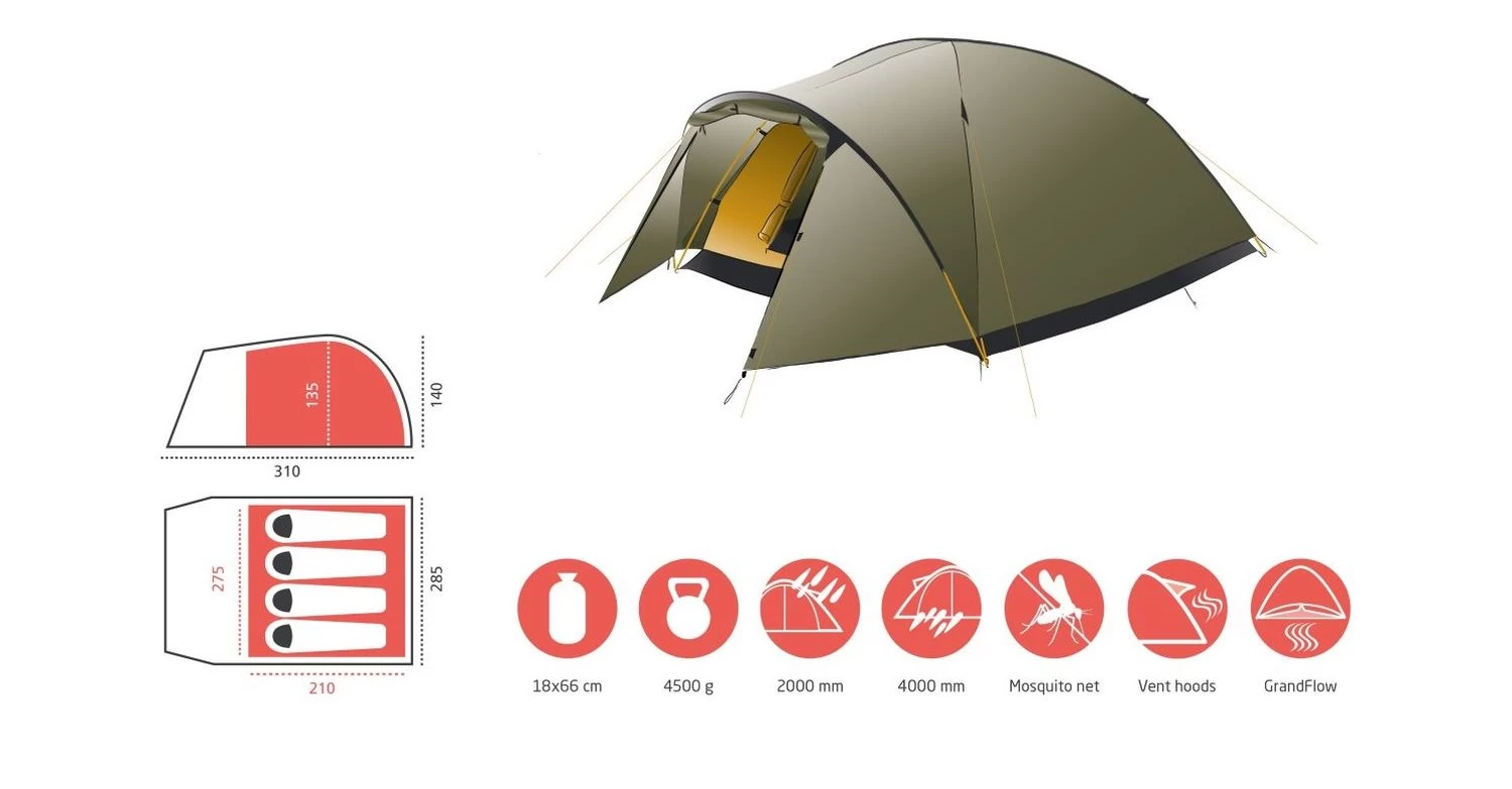 Sie brauchen mehr Platz? TOPEKA 4 ist der große Bruder von TOPEKA 2 und TOPEKA 3. Es ist wesentlich größer, bietet ausreichend Platz für vier bis fünf Personen und verfügt über die gleichen Eigenschaften wie die anderen Modelle. Die große Apsis vor dem Innenzelt bietet zusätzlichen Stauraum für Gepäck oder Ausrüstung. Hervorragendes, anpassbares Innenklima dank der neuen GrandFlow-Belüftung an der Außenplane. Das Innenzelt kann bei trockenem Wetter separat aufgestellt werden. Toll für Rad-, Kajak- und Campingausflüge am Wochenende.