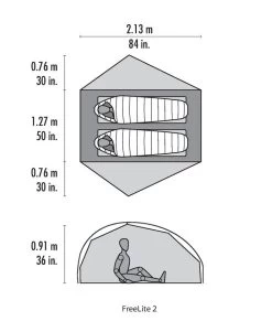 Trotz einer rechteckigen Grundfläche (ohne wie sonst übliche konische Seiten) und einer Giebelhöhe von 1 Meter (7,6 cm als zuvor) wiegt das FreeLite 2 für zwei Personen 226 g weniger als das Vorgängermodell. Die Zeltplane aus Mikromesh erlaubt ausgezeichnete Lüftung, ein wasserdichter Wannenboden schützt vor Nässe und Kälte. Zwei kurvenfreie Zelttüren sorgen für Ein- und Austreten, ohne den Partner beim Schlaf zu stören. Die Türen haben neue Reißverschlüsse, die haltbarer sind und sich mit einer Hand bedienen lassen. Zudem schließen sich die Reißverschlüsse immer an derselben Stelle, damit die Schieber auch im Dunkeln gefunden werden können. Neue Taschen für Geräte aller Art mit Kabelführungen an den Ecken für Kopfhörer und Ladekabel. Ausrüstungsablage über Kopfhöhe ist ideal für Stirnlampen, Sonnenbrillen und mehr.