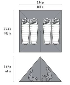– Federleicht: Äußerst effizientes Planenzelt für vier Personen, dank des geringen Gewichts auch für zwei Personen geeignet. Mit praktischer Giebelhöhe von 1,62 m.