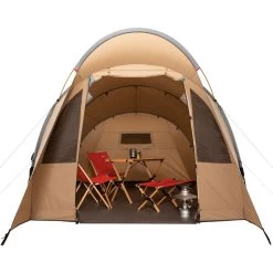 Das Spatz Stork 4 ist das Zelt für’s Familienwochenende. Das all-in-one Aufbausystem und der komplett eingenähten Boden machen den Aufbau sehr schnell und simpel. Die Haupt-Schlafkabine lässt sich einfach in zwei Kabinen mit einem Trennvorhang umwandeln. Die Haupt Schlafkabine bietet Raum für 4 Personen und das Vorzelt besitzt zwei Zugänge von außen. Zwei große Seitenfenster sorgen für genügend Tageslicht und Aussicht nach draußen. Die Vorderseite des Zeltes ist mit einem großen Sonnensegel bedeckt, so dass sich die Natur auch bei regnerischem Wetter genießen lässt.