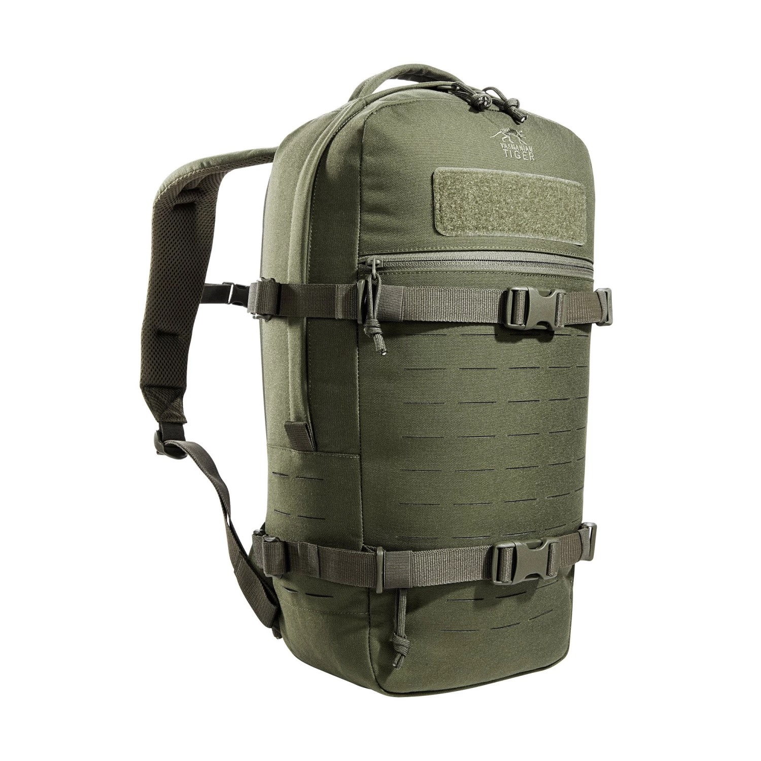 Modularer Daypack mit 18 Liter Volumen. Das Hauptfach des Tagesrucksacks ist an der inneren Rückwand mit Molle-Klett belegt und ermöglicht so die Bestückung mit Kletttaschen. Das flache Reißverschluss-Frontfach eignet sich zur Unterbringung von Dokumenten, Laser Cut-MOLLE auf der Front und an den Seiten erlaubt die individuelle Erweiterung.