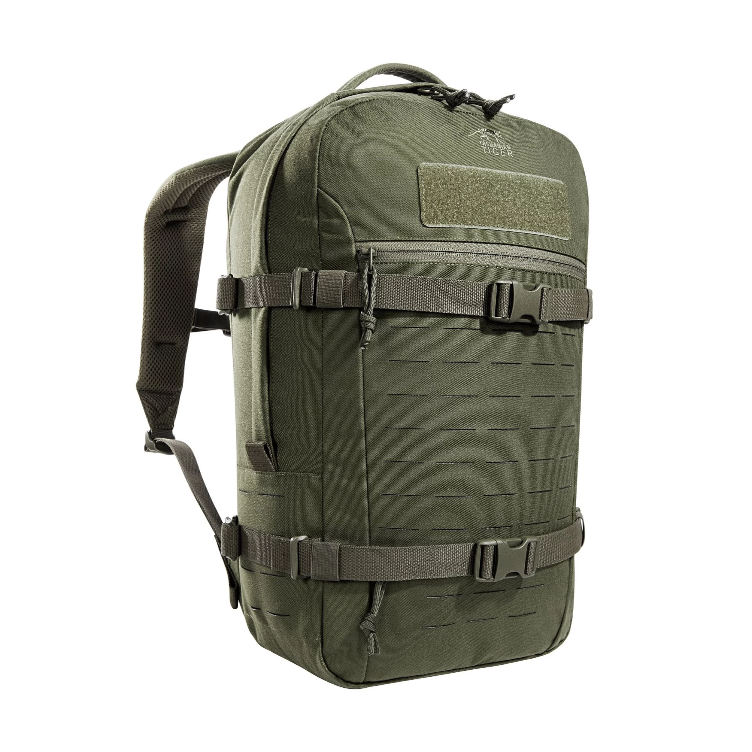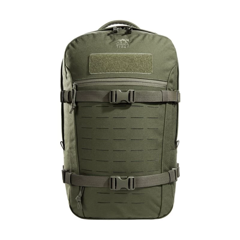 Modularer Daypack mit 23 Liter Volumen. Das Hauptfach des Tagesrucksacks ist an der inneren Rückwand mit MOLLE-Klett belegt und ermöglicht so die Bestückung mit Kletttaschen. Die Größe ist zudem für die Aufnahme eines 15.4″-Laptops ausgelegt. Das flache Reißverschluss-Frontfach eignet sich zur Unterbringung von Dokumenten, Laser Cut-MOLLE auf der Front und an den Seiten erlaubt die individuelle Erweiterung.
