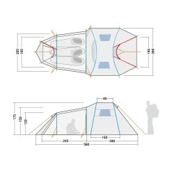 Tunnelzelt für drei Personen mit stehhoher Komfort-Apsis für umfangreiche Ausrüstung. Das Alaska 3 Plus wird mit vier Gestängebögen unterschiedlicher Länge aufgespannt und bietet eine Schlafkabine für drei Personen sowie eine große Apsis in Stehhöhe, in der (Sport-)Ausrüstung untergebracht oder Fahrräder untergestellt werden können. Der Vorraum eignet sich auch perfekt für den Aufenthalt und zum Kochen bei schlechtem Wetter. Das Zelt besitzt einen Fronteingang und einen zweiten Zugang auf der Rückseite, der bei Bedarf für optimierte Belüftung sorgt. Außen- und Innenzelt lassen sich gemeinsam aufstellen.