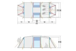 Komfortables Familienzelt mit extra-großer Apsis. Mit einer Gesamtlänge von 6,70 Meter und der stehhohen Konstruktion ist das Family Trek II eine echte Luxusbehausung. Es bietet eine geräumige Schlafkabine für drei Personen und einen äußerst großzügig bemessenen Vorraum, dazu zwei zentrale, gegenüberliegende Eingänge sowie Eingänge an beiden Stirnseiten. In die Apsis kann eine zweite Schlafkabine für drei Personen (Art. 2436 Family Trek II Extension; separat erhältlich) eingehängt werden.