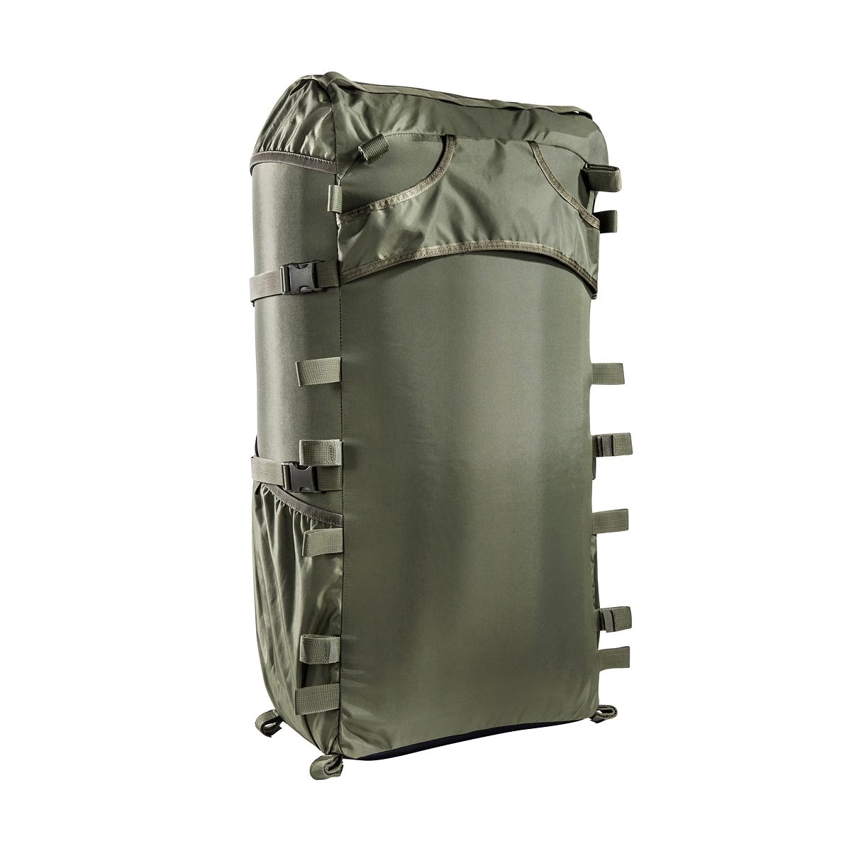 Der Tatonka Packsack Lastenkraxe besitzt umfangreiche 80 Liter Volumen. Er ist mit großen Einstecktaschen auf der Front und an den Seiten versehen. Zusätzlich besitzt er Materialschlaufen auf der Front und auf dem Deckel. Mithilfe von komplett umlaufenden Kompressionsriemen wird das Gepäck fest verzurrt.