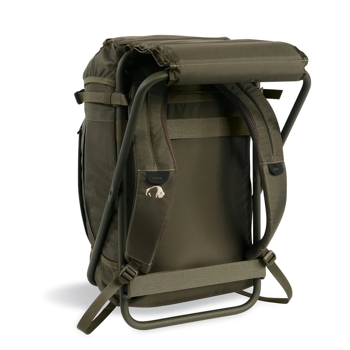 Rucksack mit integriertem Hocker und 35 Liter Volumen. Perfekt für Wandern, Angeln oder auf Festivals.