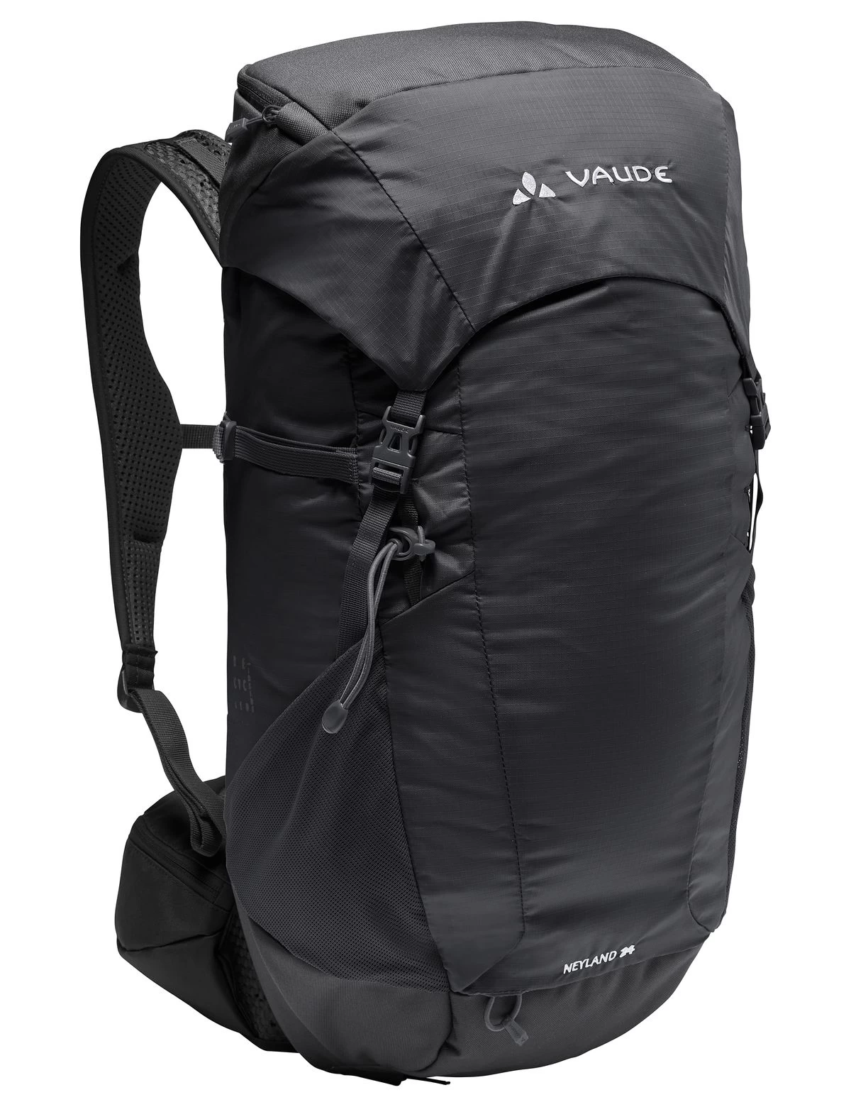 Moderner Wanderrucksack mit Deckelverschluss. Der Neyland 24 eignet sich für kleine Bergtouren und Wandertouren gleichermaßen. Sein innovatives Rückensystem mit den strukturierten Schaumstoffmodulen hinter dem Netz sorgt einerseits für eine gute Belüftung und andererseits für einen stabilen Rückenkontakt, sodass der kleine Rucksack trotz Ventilation flächig und stabil auf dem Rücken aufliegt. Die integrierte EMP Platte (ergonomic movement panel) unterstützt die natürliche Rückenbeugung beim Aufstieg und verhindert gleichzeitig, dass das Gepäck auf den Rücken durchdrücken kann. Ausgestattet ist der kleine Wanderrucksack mit einem Deckelfach, einem geräumigen Hauptfach, einem separaten Trinksystemfach und einem Fach mit Regenhülle. In die seitlichen Stretch-Taschen passen Getränk, Mütze oder andere Kleinutensilien. Wanderstöcke können an der Stockbefestigung befestigt werden und die seitlichen Kompressionsriemen dienen als weitere Gepäckfixierung. Der Neyland 24 wurde aus überwiegend recyceltem Material hergestellt und ist außerdem klimaneutral: Die Emissionen aus Materialien, Herstellungsprozess und Versand wurden ganzheitlich ermittelt und systematisch reduziert. Aktuell nicht vermeidbare Emissionen wurden vollständig über die unabhängige Non-Profit-Organisation „myclimate“ kompensiert. Das VAUDE Green Shape-Label steht für ein umweltfreundliches, funktionelles Produkt aus nachhaltigen und bluesign® zertifizierten Materialien.