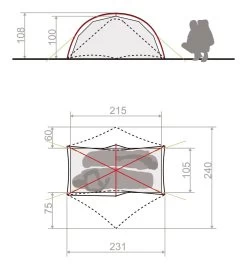 • Außenzelt: 100% Polyamid; 20 D Ripstop both sides Silicone coated 3.000 mm;