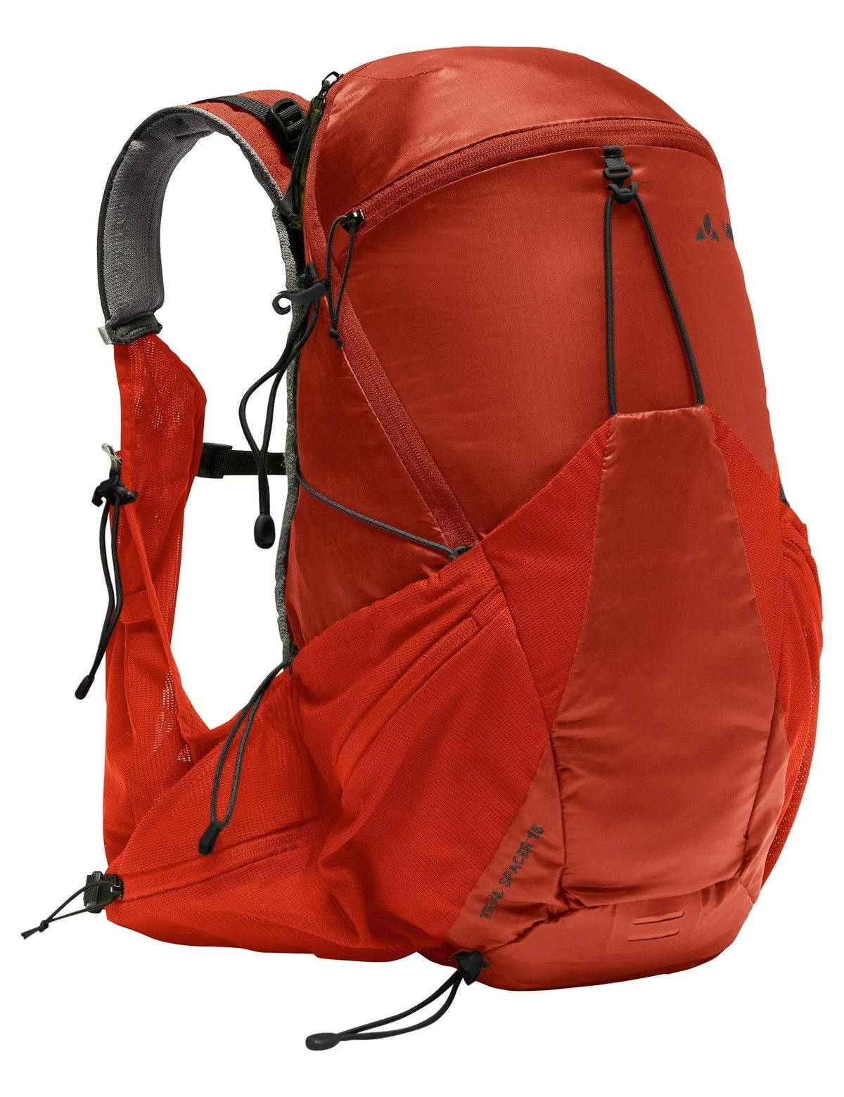 Ein perfekter Begleiter für lange, schnelle Touren: Dieser leichte Multisport-Rucksack bietet durch das 3D-formgestrickte Rückenteil maximalen Komfort, perfekten Halt und mit 18 Litern Volumen viel Platz für Speed Hiker, Mountainbiker, Langläufer und sportliche Wanderer. Die aus umweltfreundlich recyceltem Garn hergestellte 3D-Strickkonstruktion ist weltweit einzigartig: Damit werden unterschiedliche Druckzonen im Rückenbereich berücksichtigt und eine homogene Druckverteilung und Belüftung erreicht. Der Trail Spacer 18 verfügt über eine Trinkblasenvorrichtung und Stauraum für eine Tagestour. Die Schulterträger bieten Fächer mit Platz für Gels, Riegel, Handy u.a. Zwei seitliche Stretchtaschen an dem leichten Rucksack bieten weiteren Stauraum. In der Fronttasche kann eine nasse Regenjacke und das Erste Hilfe Set verstaut werden. Stockhalterung und Kompressionsriemen sind auch bei aufgesetztem Rucksack bedienbar. Für das recycelte Hauptmaterial Polyamid werden über ein zertifiziertes Massenbilanzverfahren unter anderem Altreifen verwendet. Dadurch werden bis zu 60 % CO2 eingespart. Da das Rückensystem auf Form gestrickt wird, fallen bei der Produktion keine Abfallreste an. Der Leichtrucksack ist klimaneutral: Die Emissionen aus Materialien, Herstellungsprozess und Versand wurden ganzheitlich ermittelt und systematisch reduziert. Aktuell nicht vermeidbare Emissionen wurden vollständig über die unabhängige Non-Profit-Organisation „myclimate“ kompensiert. Das VAUDE Green Shape-Label steht für ein umweltfreundliches, funktionelles Produkt aus nachhaltigen und bluesign® zertifizierten Materialien. Tipp: Rucksack immer von Hand waschen.