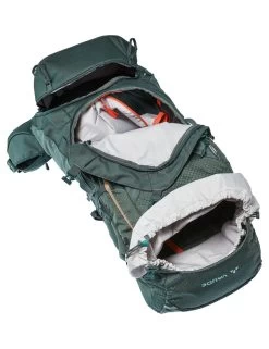 Ein zuverlässiger Begleiter für drei Wochen Schottland oder Skandinavien: Wer gern einsame Regionen durchwandert, braucht einen robusten, komfortablen Damen-Trekkingrucksack mit viel Stauraum. Ambitionierte Trekkerinnen können dank 60 Liter Volumen Ausrüstung für mehrere Tage bequem transportieren. Das Tergolight Comfort Space Pro-Tragesystem gibt das Gewicht optimal an den gepolsterten Hüftgurt ab – wichtig bei schweren Lasten. Durch den Spalt in der unteren Polsterung des Damen-Trekkingrucksacks wird der Druck auf das Iliosakralgelenk reduziert und der untere Rücken entlastet. Rückenlänge sowie Lastenpositionierung sind individuell einstellbar. Mit kürzeren Schultergurten, verkürzter Rückenlänge sowie einem speziell geformten Hüftgurt passt sich der Damen-Trekkingrucksack der weiblichen Anatomie an. Die weich gepolsterten Ergoshape-Schulterträger sorgen für gute Bewegungsfreiheit der Arme. Der Zugriff auf das Hauptfach erfolgt von oben und von vorne. Ins Bodenfach passt z. B. ein Schlafsack. Trinkflasche oder Karten sind in den Seitentaschen schnell zur Hand, ohne den Damen-Trekkingrucksack abzusetzen. Die Fronttasche bietet Stauraum z. B. für eine Regenjacke. Die Kompressionsriemen sowie die Daisy Chain bieten zusätzliche Befestigungsmöglichkeiten. Der Top-Kompressionsriemen hat eine Ersatzschnalle, falls unterwegs eine der Schnallen zu Bruch gehen sollte. Der höhenverstellbare, abnehmbare Deckel ermöglicht weitere 10 Liter Zuladung und kann außerdem zur Hüfttasche umfunktioniert werden. Mit integrierter Regenhülle. Das äußerst robuste, abriebfeste Hauptmaterial ist zu 100 % recycelt. Hinter dem VAUDE Green Shape-Label steckt ein umweltfreundliches, funktionelles Produkt aus nachhaltigen, bluesign® zertifizierten Materialien.